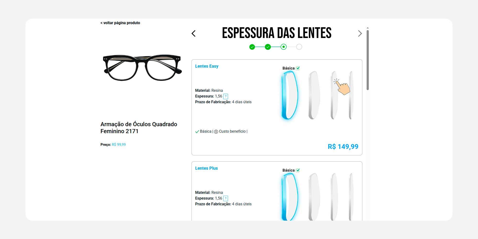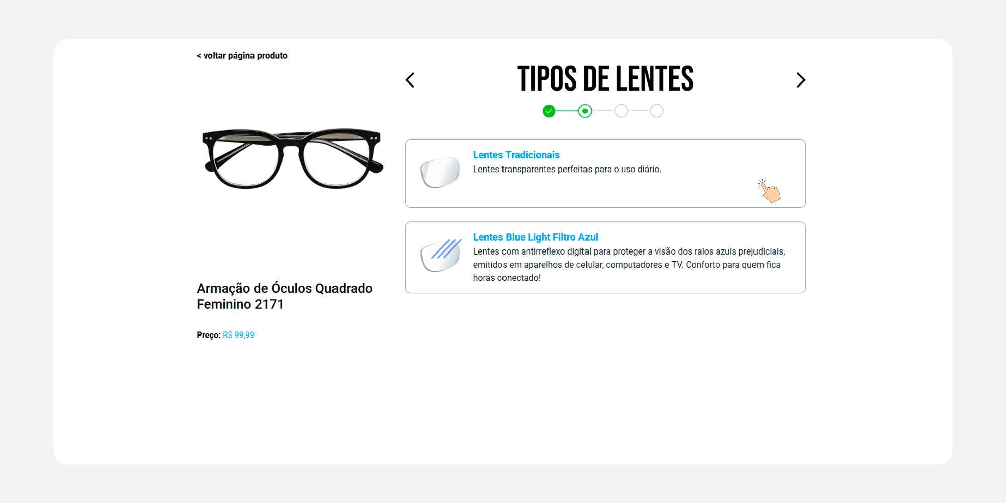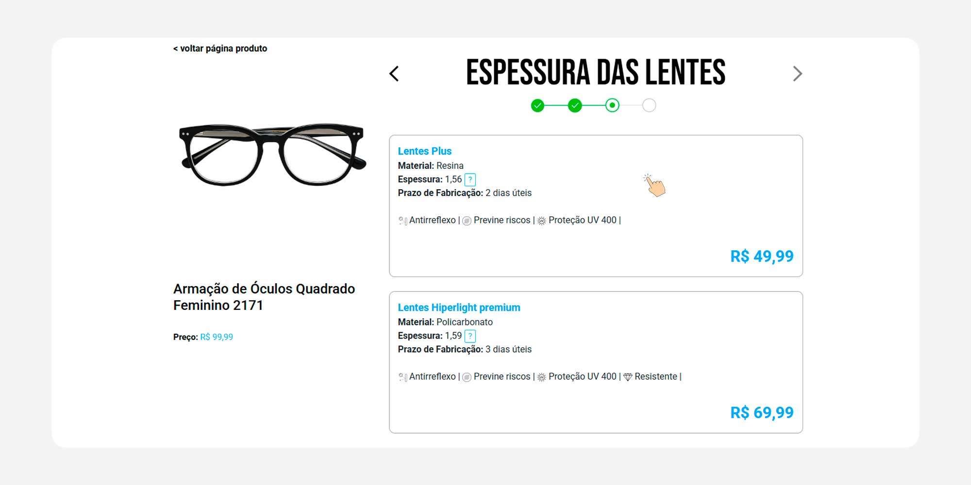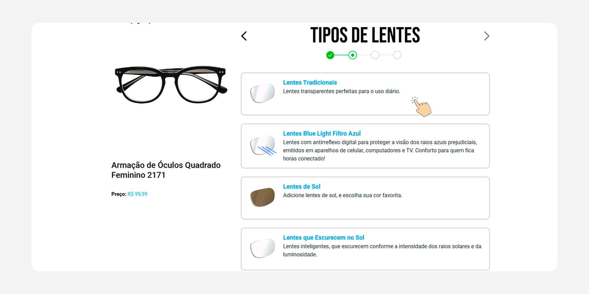 Agora escolha os tratamentos e benefícios da lentes mais necessários para o seu estilo de vida.